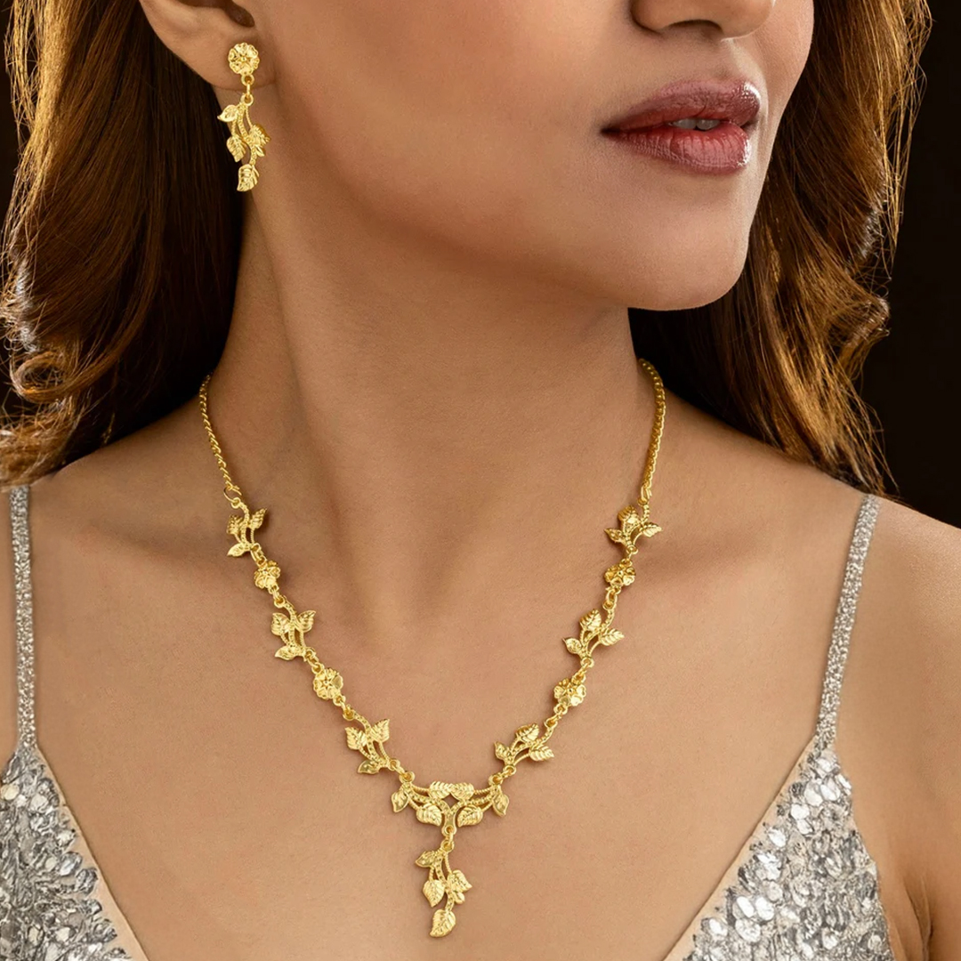 ALRO Anti-Tarnish Golden Leaves Necklace Set With Earrings